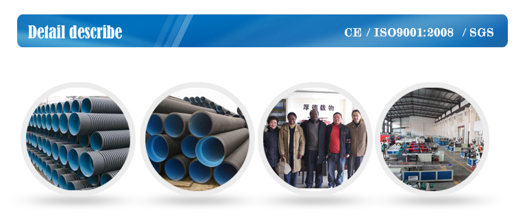 該生產線是以HDPE/PP為原料,所生產的雙壁波紋管內壁光滑平整,外壁呈梯形波紋狀,除了具有普通塑料管所具有的耐腐蝕性好、絕緣性高、流動阻力小等特點以外,還因特殊的內外壁中空環形結構,使其具有環剛度大、質量輕、耐高壓、韌性好、耐磨、耐沖擊性強、不易破損、施工方便、安裝成本低、使用壽命長等特點。該雙壁波紋管一般采用擴口承插和密封圈連接,可以有效防止熱脹冷縮的影響,被廣泛應用于市政改造工程、建筑、工農業排水、農業節水灌溉、污水處理工程等領域。