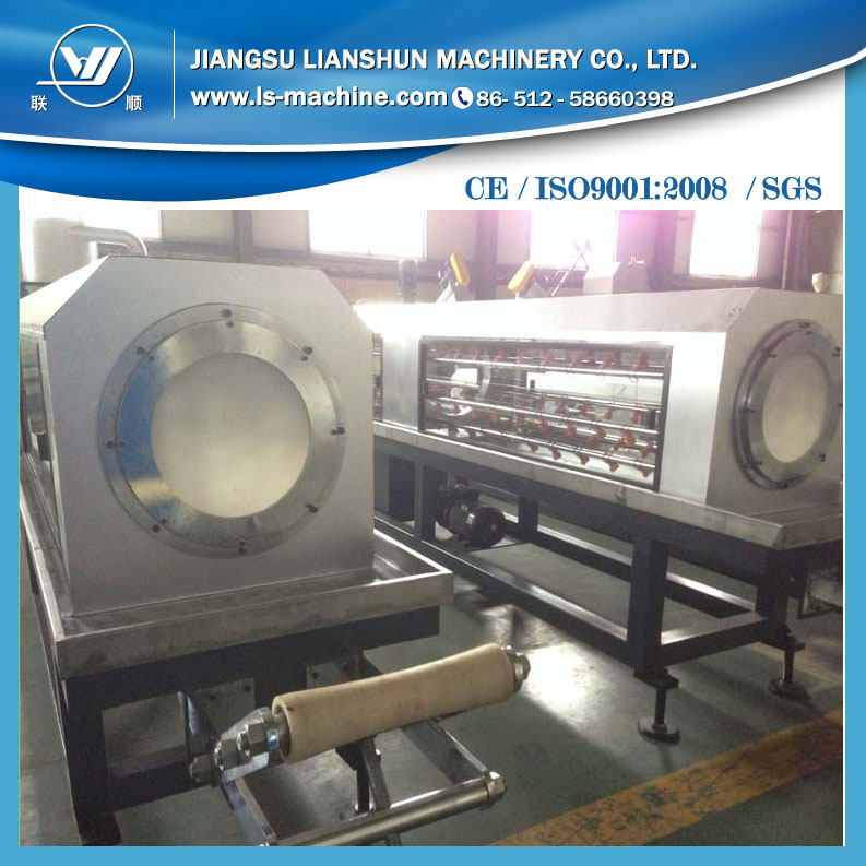 PE系列塑料管材生產線主要用于生產農用,建筑排水排污等方面。該機組由真空定徑箱、牽引機、切割機、翻料架等組成。單螺桿擠出機及牽引機采用進口交流變頻調速裝置,真空泵及牽引電機均采用良好產品。